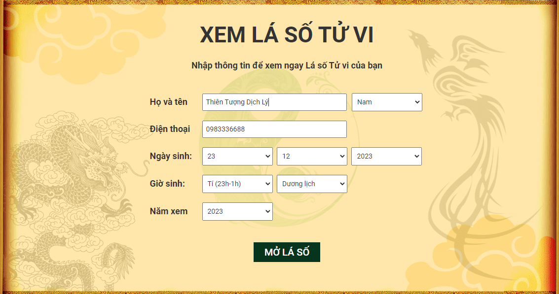 Cảm ơn bạn đã sử dụng dịch vụ của Thiên tượng dịch lý!